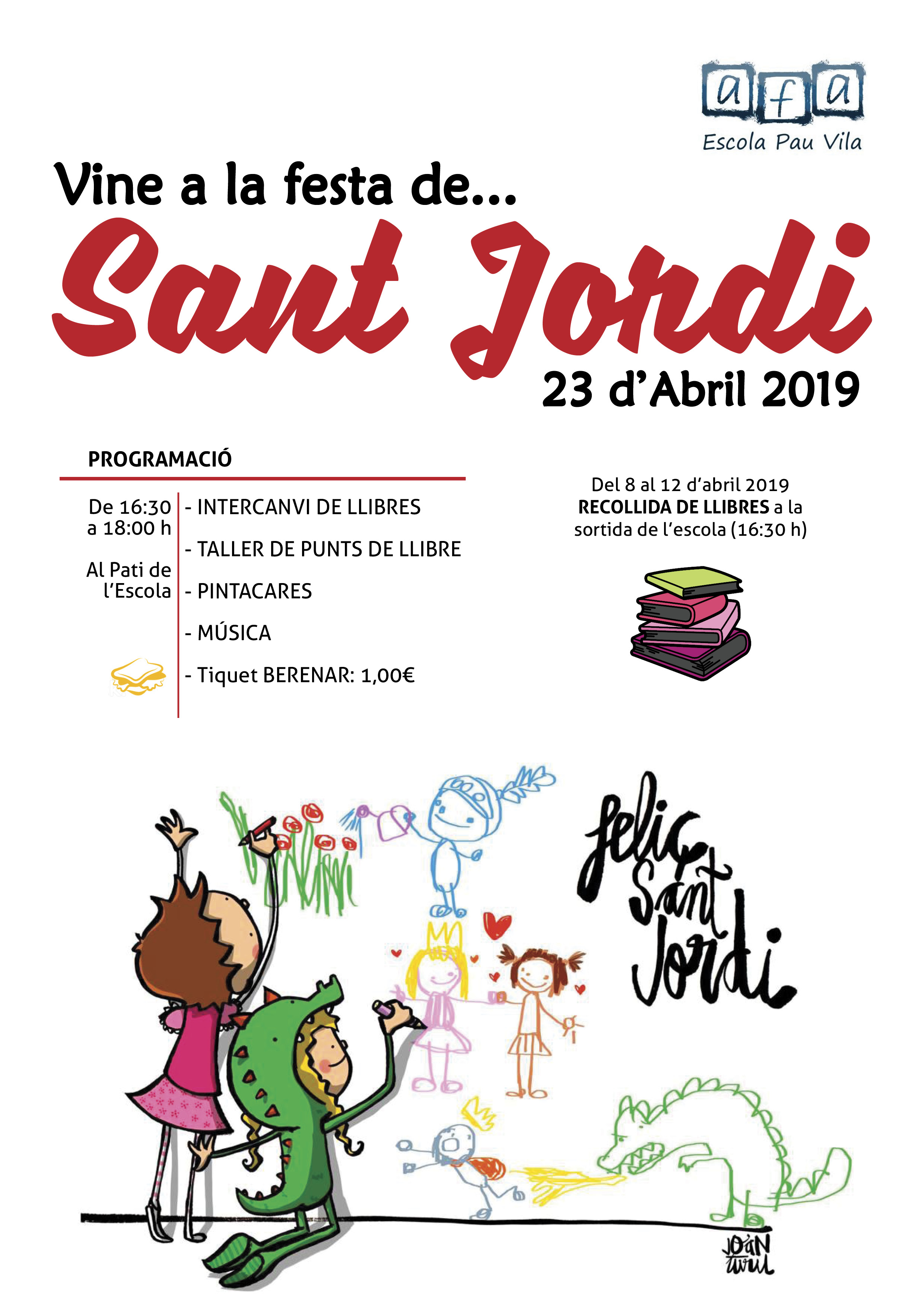 El proper 23 d’abril és la diada de Sant Jordi i també el Dia Internacional del LLibre. Per a celebrar-ho organitzarem la nostra festa com cada any.