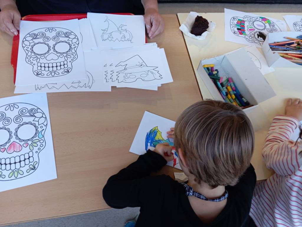 La festa de Halloween va ser tot un èxit, organitzada des de l’AFA perquè totes les famílies poguessin gaudir juntes d’una tarda inoblidable. Les activitats van ser variades: vam tenir manualitats creatives on els participants van fer garlandes esgarrifoses, màscares terrorífiques i portallums que van aportar un toc lluminós i tenebrós a l’ambient.